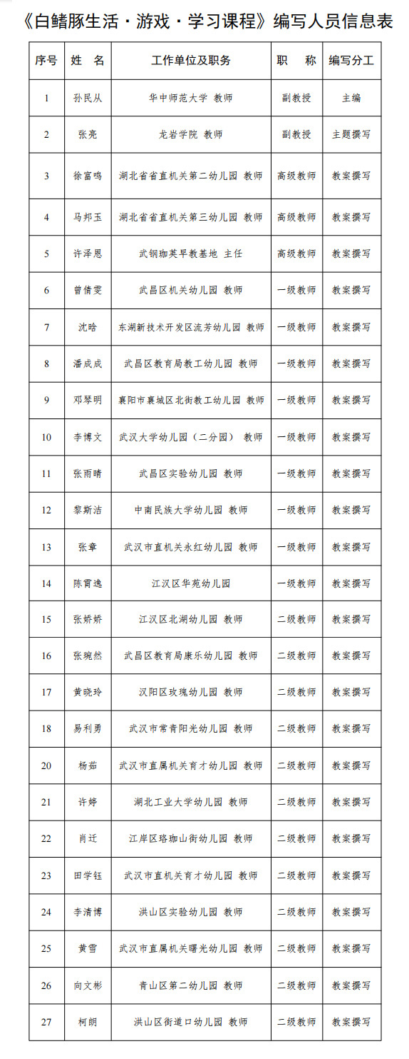 附件:《白鳍豚生活·游戏·学习课程》编写人员信息表